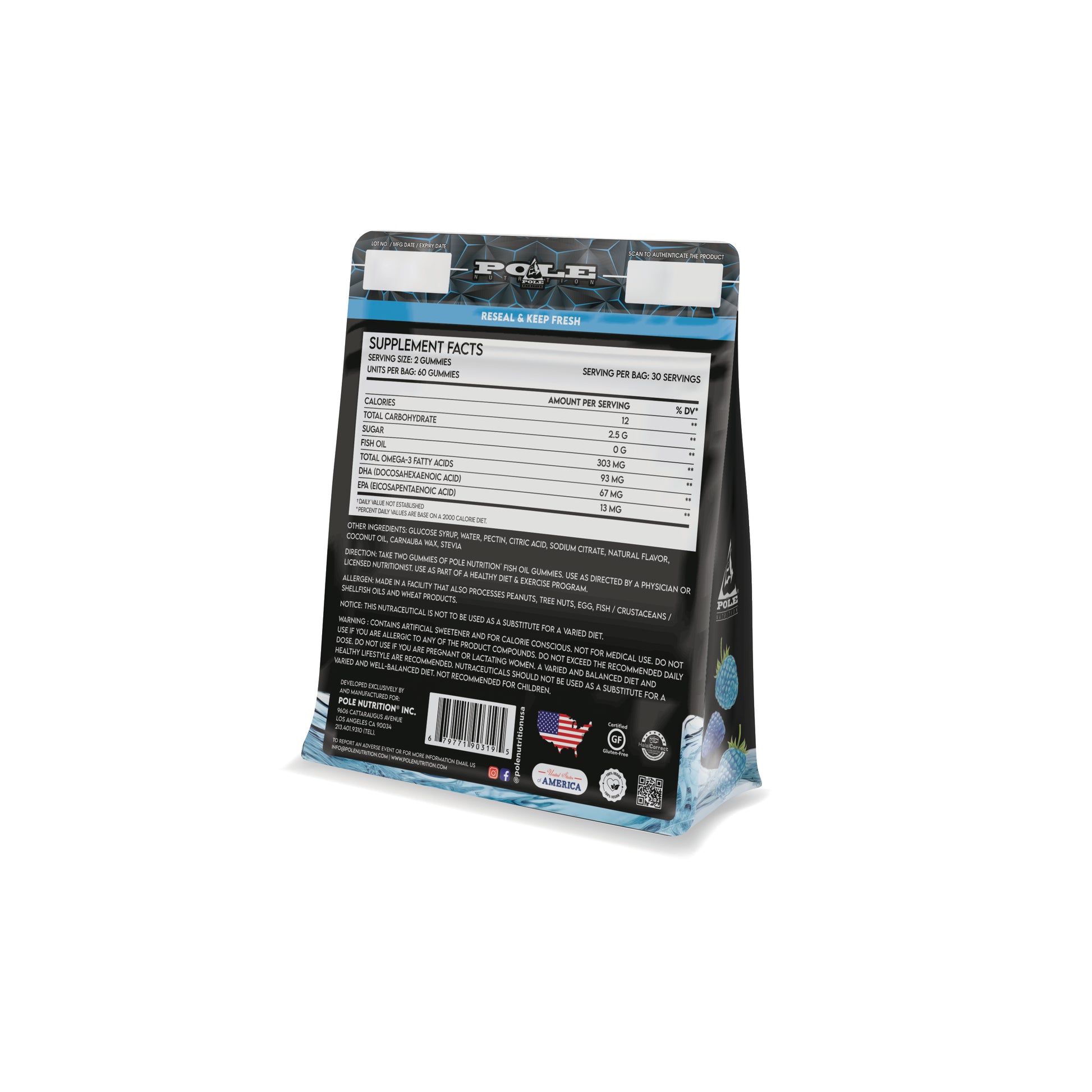 Support your heart and brain health with Pole Nutrition Fish Oil Gummies in a delightful Blue Raspberry flavor! These gummies provide essential Omega-3 fatty acids, including DHA and EPA, in a convenient and tasty form. With no sugar added, they’re a great choice for a balanced diet. Each bag contains 60 gummies for a 30-day supply, with a net weight of 180 grams