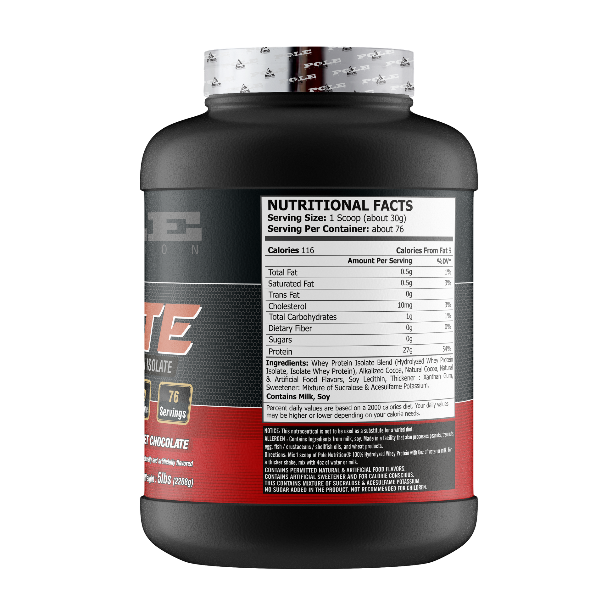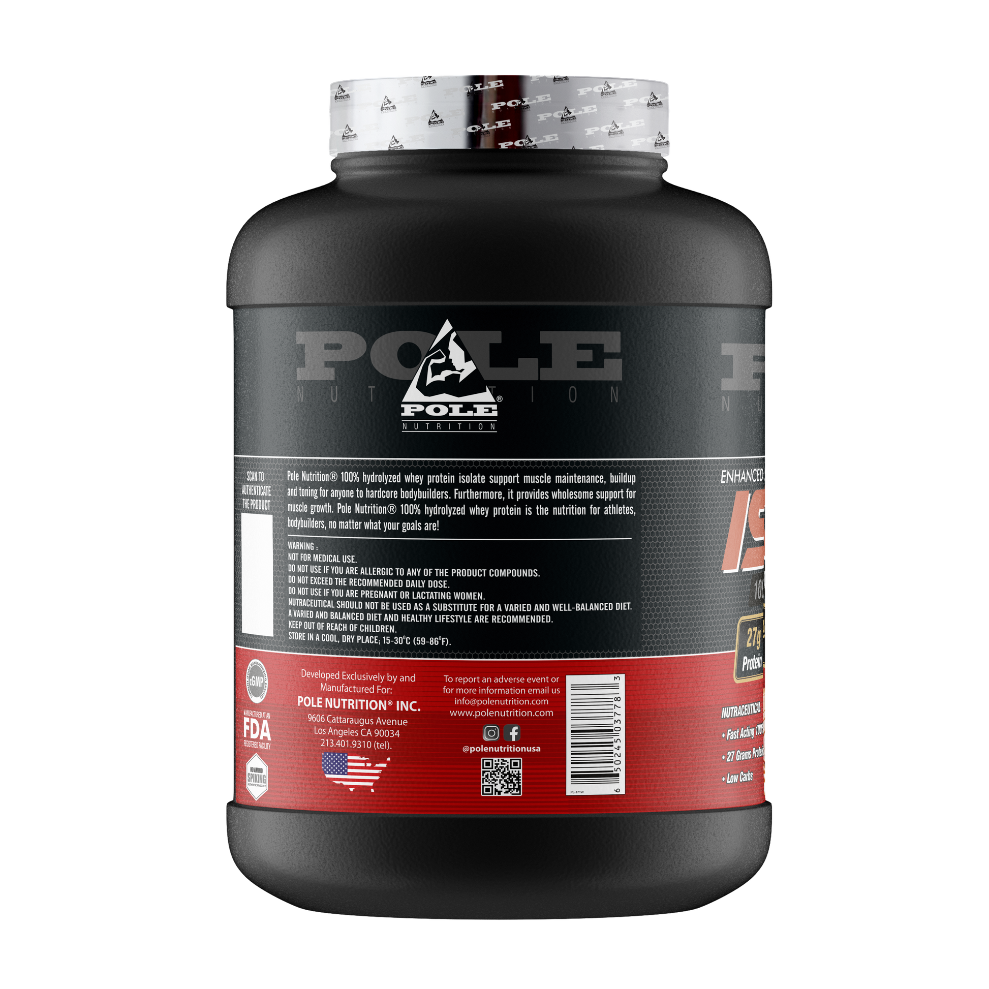 - Pole Nutrition Isolate 100% Hydrolyzed whey provides 27g protein per serving